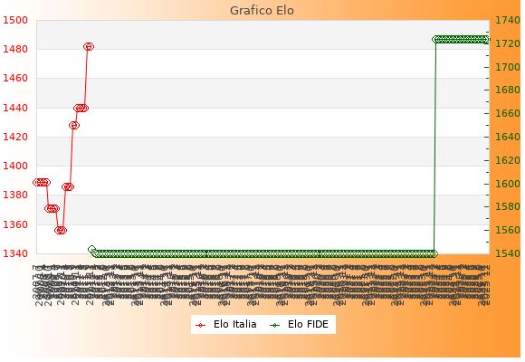 Elo FIDE: 1724    Migliore: 1724  (Dicembre 2025)    Peggiore: 1540  (Maggio 2012)
