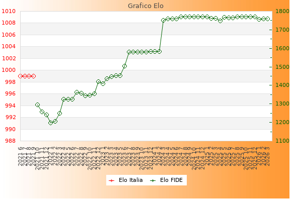 Elo FIDE: 1758    Migliore: 1771  (Novembre 2025)    Peggiore: 1197  (Gennaio 2022)