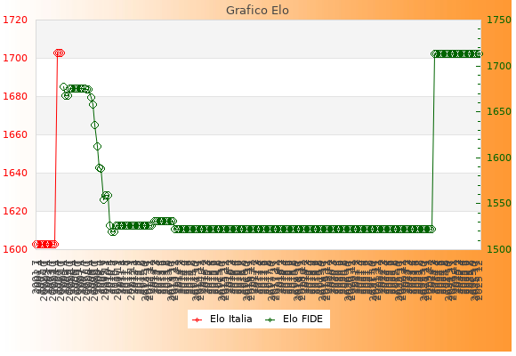 Elo FIDE: 1713    Migliore: 1713  (Dicembre 2025)    Peggiore: 1519  (Maggio 2010)