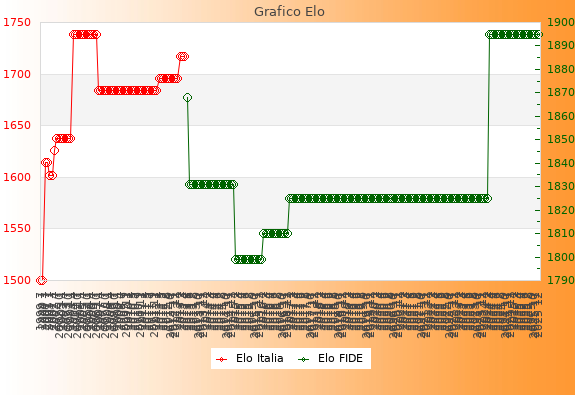 Elo FIDE: 1895    Migliore: 1895  (Dicembre 2025)    Peggiore: 1799  (Febbraio 2015)