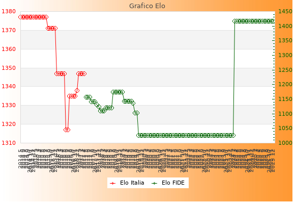 Elo FIDE: 1416    Migliore: 1416  (Dicembre 2025)    Peggiore: 1027  (Ottobre 2019)