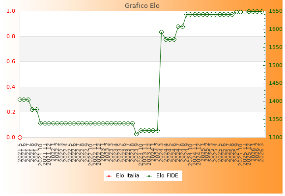 Elo FIDE: 1648    Migliore: 1648  (Marzo 2026)    Peggiore: 1309  (Settembre 2023)
