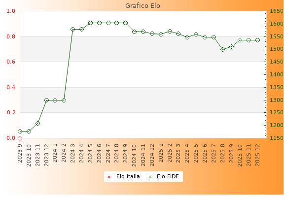 Elo FIDE: 1536    Migliore: 1603  (Settembre 2024)    Peggiore: 1178  (Settembre 2023)