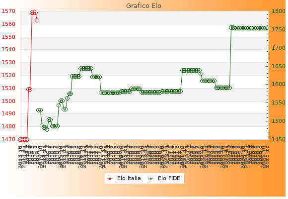 Elo FIDE: 1754    Migliore: 1755  (Aprile 2024)    Peggiore: 1477  (Febbraio 2015)