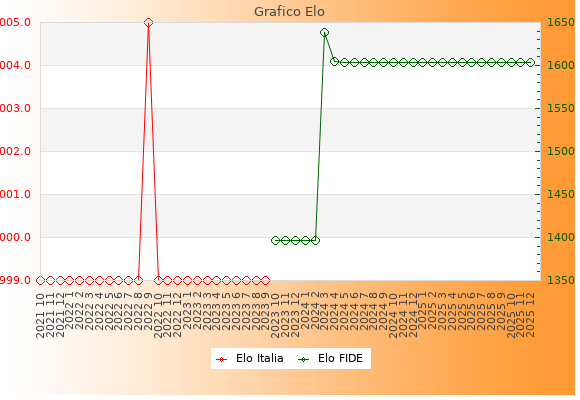 Elo FIDE: 1604    Migliore: 1638  (Marzo 2024)    Peggiore: 1396  (Ottobre 2023)