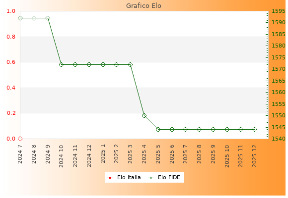 Elo FIDE: 1544    Migliore: 1592  (Settembre 2024)    Peggiore: 1544  (Maggio 2025)