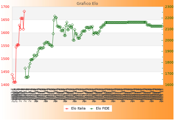 Elo FIDE: 2125    Migliore: 2217  (Ottobre 2014)    Peggiore: 1667  (Gennaio 2011)