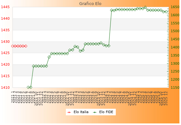 Elo FIDE: 1621    Migliore: 1649  (Aprile 2025)    Peggiore: 1151  (Luglio 2021)