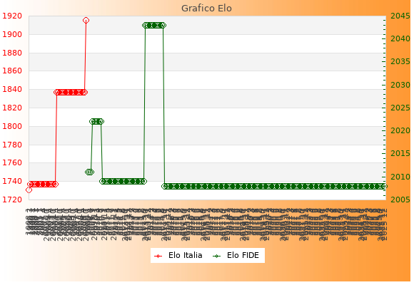 Elo FIDE: 2008    Migliore: 2043  (Settembre 2014)    Peggiore: 2008  (Ottobre 2014)