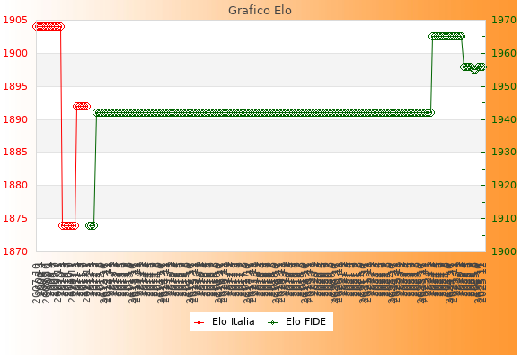 Elo FIDE: 1956    Migliore: 1965  (Marzo 2025)    Peggiore: 1908  (Gennaio 2012)