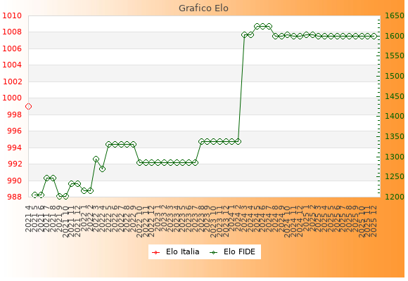 Elo FIDE: 1599    Migliore: 1623  (Luglio 2024)    Peggiore: 1202  (Settembre 2021)