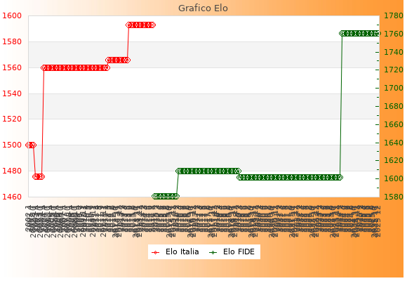Elo FIDE: 1761    Migliore: 1761  (Dicembre 2025)    Peggiore: 1581  (Gennaio 2015)