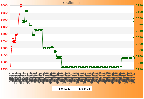 Elo FIDE: 1956    Migliore: 2103  (Ottobre 2007)    Peggiore: 1927  (Luglio 2015)