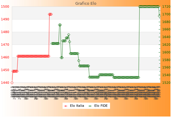 Elo FIDE: 1695    Migliore: 1720  (Febbraio 2026)    Peggiore: 1534  (Agosto 2021)