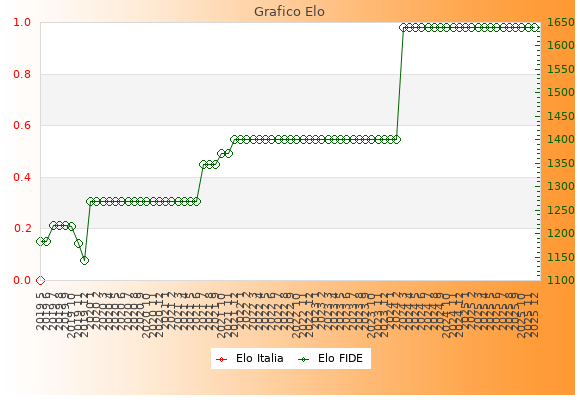 Elo FIDE: 1640    Migliore: 1640  (Dicembre 2025)    Peggiore: 1143  (Dicembre 2019)