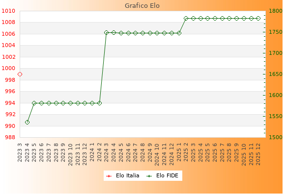 Elo FIDE: 1782    Migliore: 1782  (Dicembre 2025)    Peggiore: 1536  (Aprile 2023)