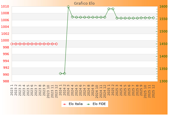 Elo FIDE: 1555    Migliore: 1599  (Marzo 2024)    Peggiore: 1331  (Gennaio 2024)