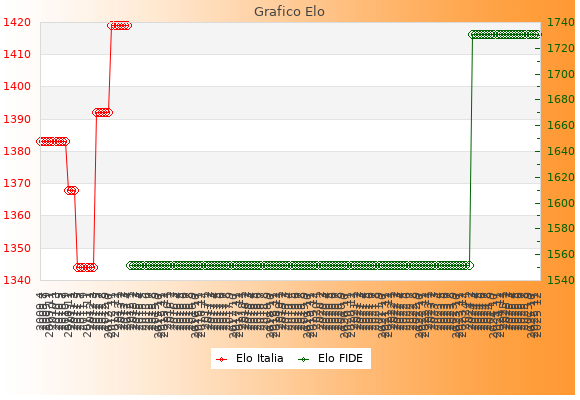 Elo FIDE: 1731    Migliore: 1731  (Dicembre 2025)    Peggiore: 1552  (Gennaio 2015)