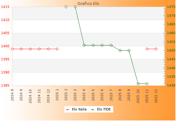 Elo Italia: 1399    Migliore: 1475  (Marzo 2025)    Peggiore: 1431  (Ottobre 2025)
