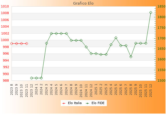 Elo FIDE: 1822    Migliore: 1822  (Dicembre 2025)    Peggiore: 1512  (Dicembre 2023)