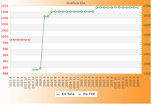 Elo FIDE: 1692    Migliore: 1693  (Novembre 2025)    Peggiore: 1369  (Dicembre 2023)
