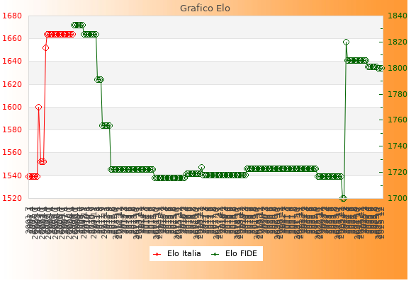 Elo FIDE: 1800    Migliore: 1833  (Settembre 2009)    Peggiore: 1700  (Gennaio 2024)