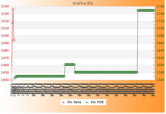 Elo FIDE: 1749    Migliore: 1749  (Dicembre 2025)    Peggiore: 1566  (Ottobre 2008)