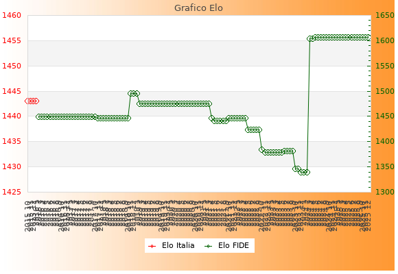Elo FIDE: 1607    Migliore: 1607  (Dicembre 2025)    Peggiore: 1340  (Dicembre 2023)