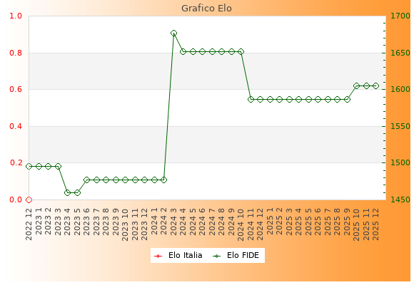 Elo FIDE: 1605    Migliore: 1677  (Marzo 2024)    Peggiore: 1460  (Aprile 2023)