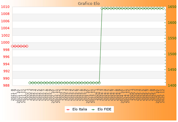 Elo FIDE: 1645    Migliore: 1645  (Dicembre 2025)    Peggiore: 1409  (Febbraio 2022)