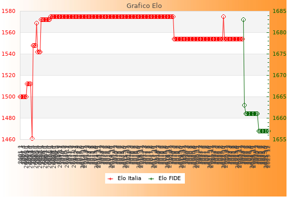 Elo FIDE: 1657    Migliore: 1683  (Marzo 2024)    Peggiore: 1657  (Aprile 2025)