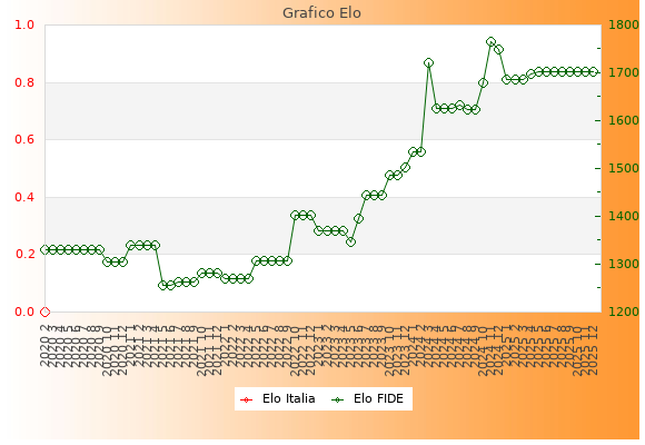 Elo FIDE: 1703    Migliore: 1766  (Novembre 2024)    Peggiore: 1256  (Maggio 2021)
