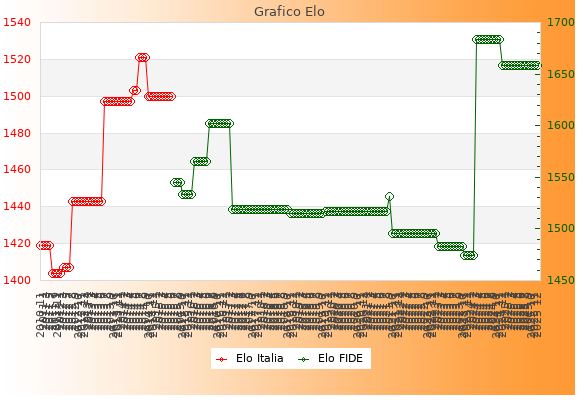 Elo FIDE: 1658    Migliore: 1684  (Novembre 2024)    Peggiore: 1474  (Novembre 2023)