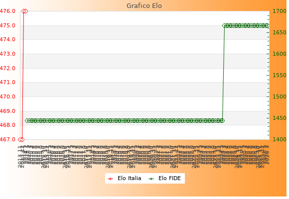 Elo FIDE: 1666    Migliore: 1666  (Marzo 2026)    Peggiore: 1444  (Gennaio 2015)