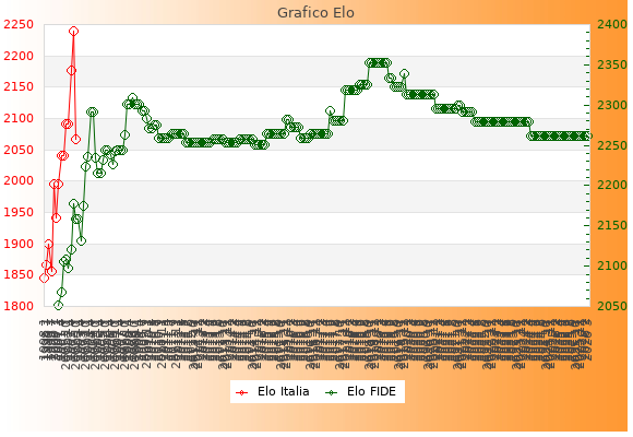 Elo FIDE: 2261    Migliore: 2353  (Maggio 2019)    Peggiore: 2052  (Gennaio 2001)