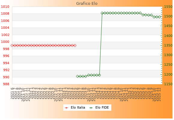 Elo FIDE: 1498    Migliore: 1518  (Aprile 2024)    Peggiore: 1191  (Giugno 2023)