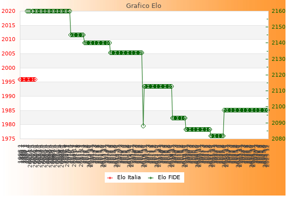 Elo FIDE: 2098    Migliore: 2160  (Marzo 2010)    Peggiore: 2082  (Ottobre 2021)