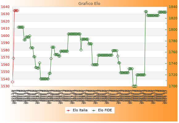 Elo FIDE: 1831    Migliore: 1832  (Aprile 2024)    Peggiore: 1700  (Febbraio 2023)