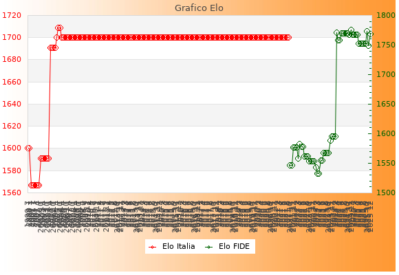 Elo FIDE: 1769    Migliore: 1775  (Dicembre 2024)    Peggiore: 1532  (Marzo 2023)