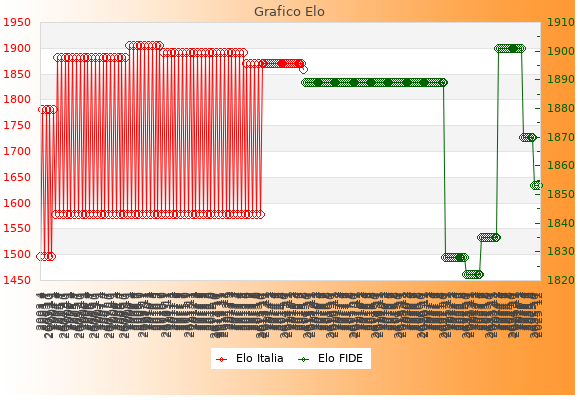 Elo FIDE: 1853    Migliore: 1901  (Marzo 2025)    Peggiore: 1822  (Ottobre 2022)