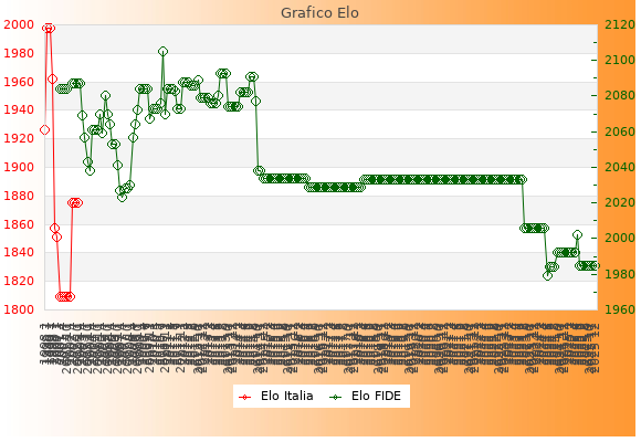 Elo FIDE: 1985    Migliore: 2105  (Settembre 2010)    Peggiore: 1979  (Maggio 2024)