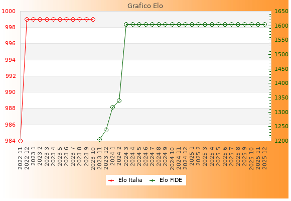 Elo FIDE: 1604    Migliore: 1604  (Dicembre 2025)    Peggiore: 1205  (Novembre 2023)