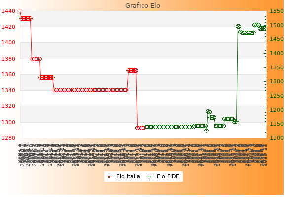 Elo FIDE: 1489    Migliore: 1502  (Luglio 2025)    Peggiore: 1127  (Marzo 2022)