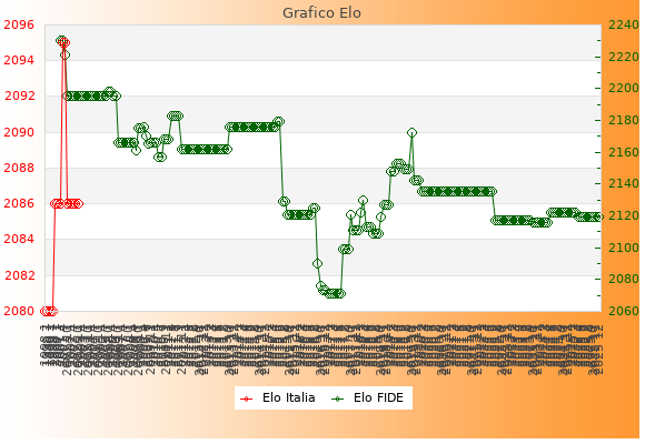 Elo FIDE: 2119    Migliore: 2230  (Aprile 2001)    Peggiore: 2071  (Gennaio 2017)