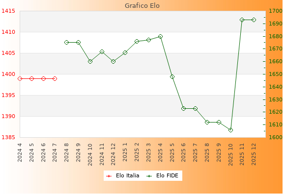 Elo FIDE: 1693    Migliore: 1693  (Dicembre 2025)    Peggiore: 1606  (Ottobre 2025)