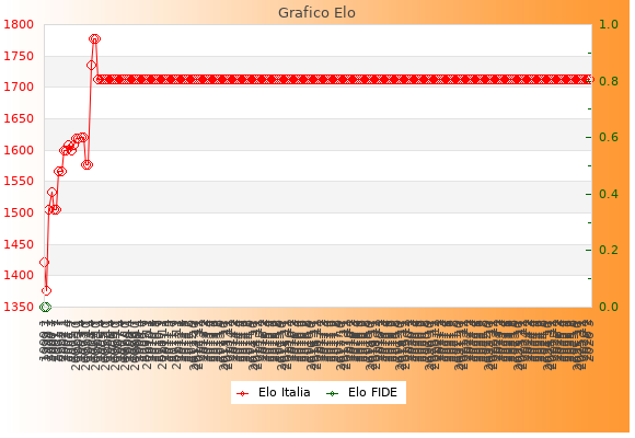 Elo Italia: 1712    Migliore: 1778  (Ottobre 2004)    Peggiore: 1377  (Luglio 1999)