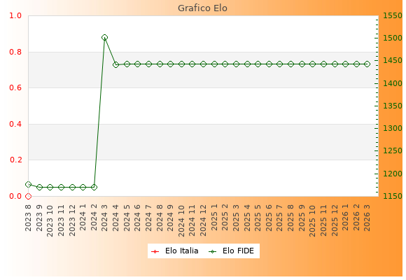 Elo FIDE: 1443    Migliore: 1502  (Marzo 2024)    Peggiore: 1170  (Settembre 2023)