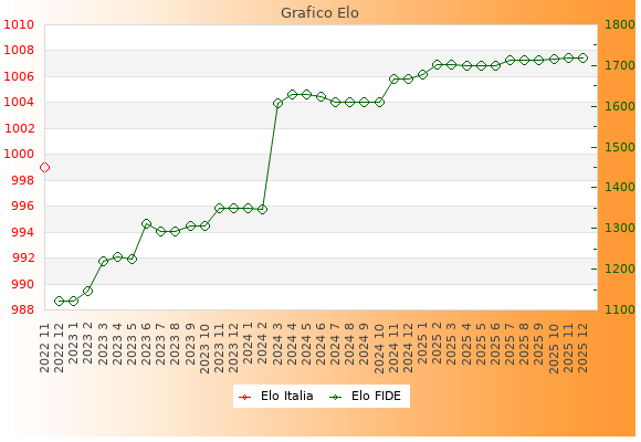 Elo FIDE: 1718    Migliore: 1718  (Dicembre 2025)    Peggiore: 1123  (Dicembre 2022)