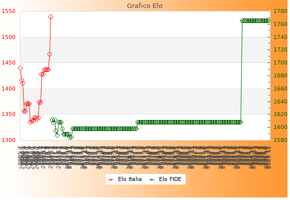 Elo FIDE: 1765    Migliore: 1765  (Dicembre 2025)    Peggiore: 1585  (Dicembre 2012)
