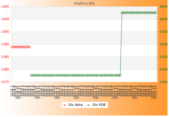 Elo FIDE: 1626    Migliore: 1626  (Dicembre 2025)    Peggiore: 1377  (Luglio 2019)